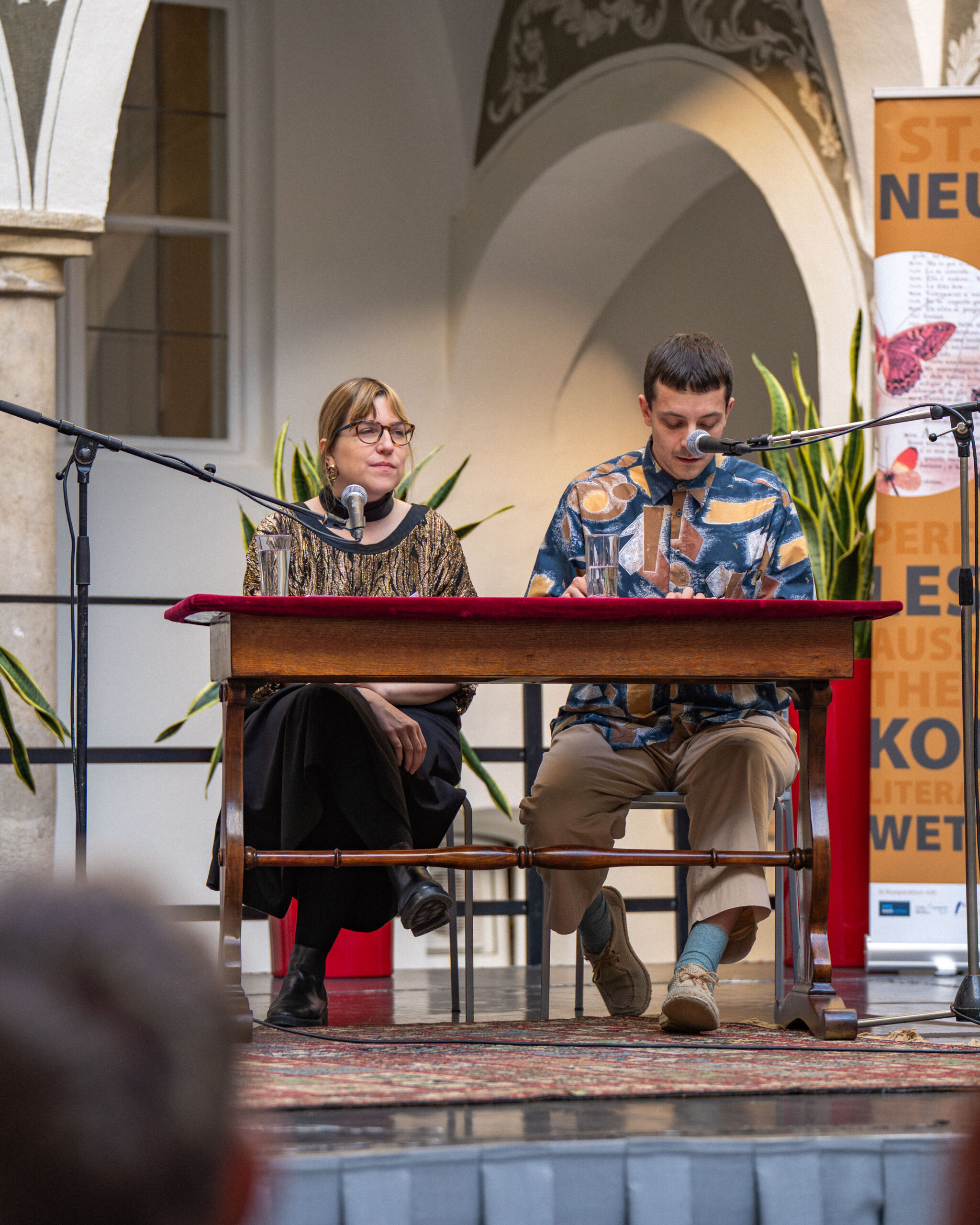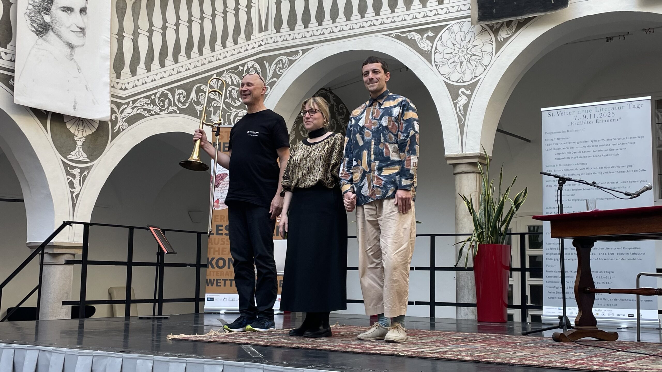 Am Samstagabend fand dann die Lesung der bekannten Autorin Monika Helfer statt, die heuer auch auf der Shortlist für den Österreichischen Buchpreis stand. Sie las aus ihren autobiografischen Familienromanen und führte darüber ein interessantes Gespräch mit der beliebten Bachmannpreis-Jurorin Brigitte Schwens-Harrant. Der in St. Veit ansässige Akkordeonist Jovica Ivanović begeisterte sowohl das Publikum als auch das Podium mit der Virtuosität seiner Interpretationen.