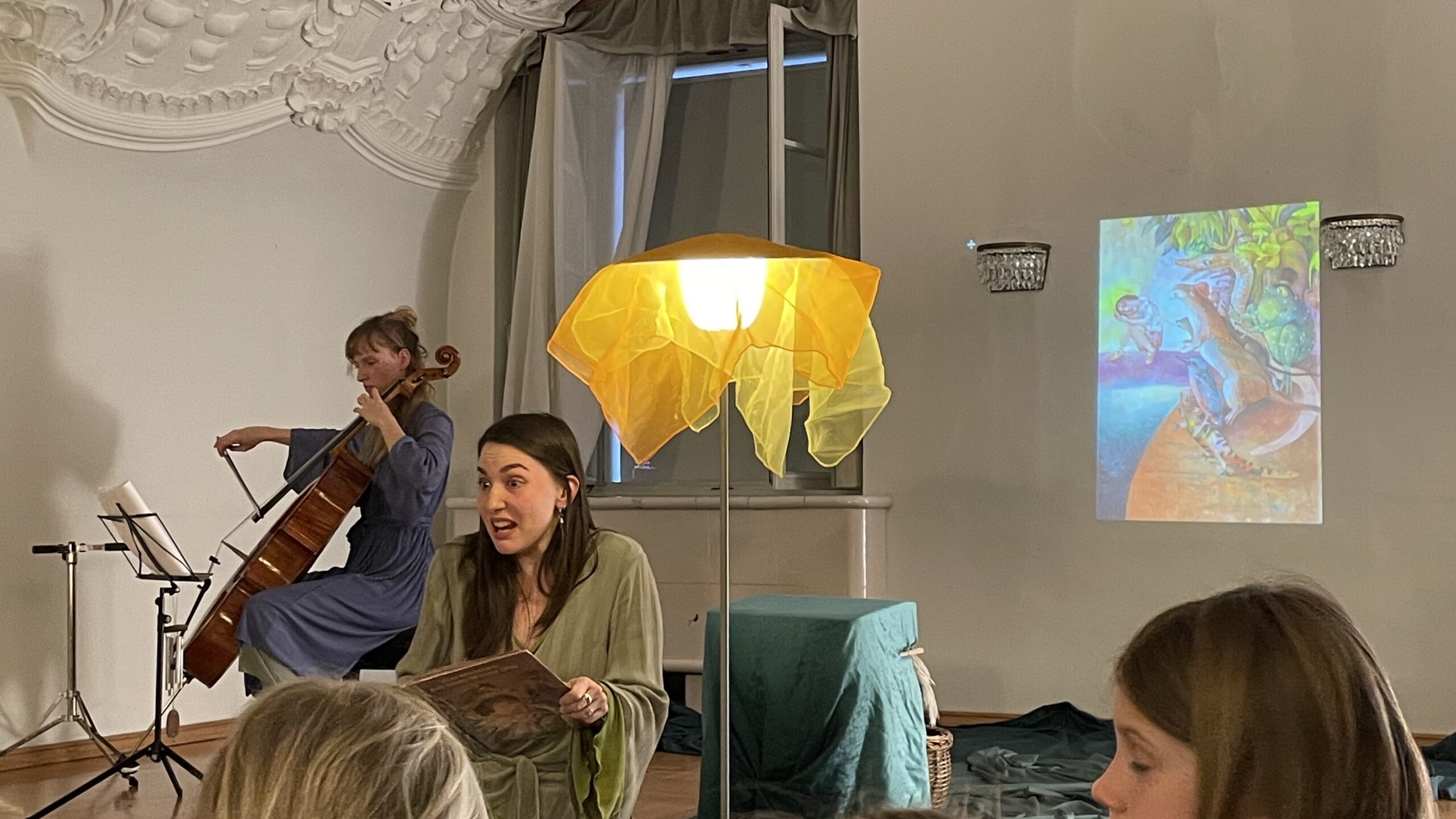 Julia Herzog als Erzählerin und Jana Thomaschütz am Cello verzauberten am Samstagnachmittag junge und ältere Gäste im Trauungssaal mit ihrer szenischen Erzählung „Vom Mädchen, das über das Wasser ging“ nach einem Kinderbuch von Barbara Frischmuth.